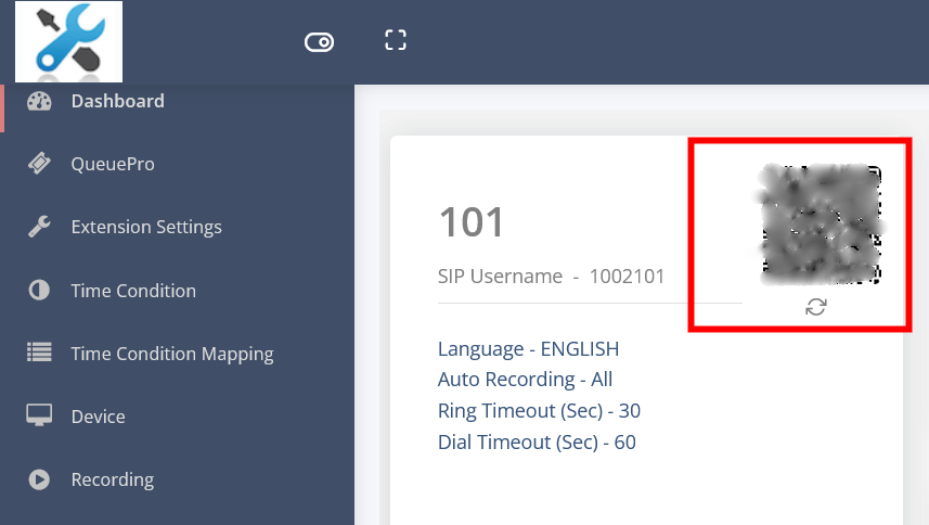 To get the QR CODE for extension 101 if you do not have the email configuration anymore