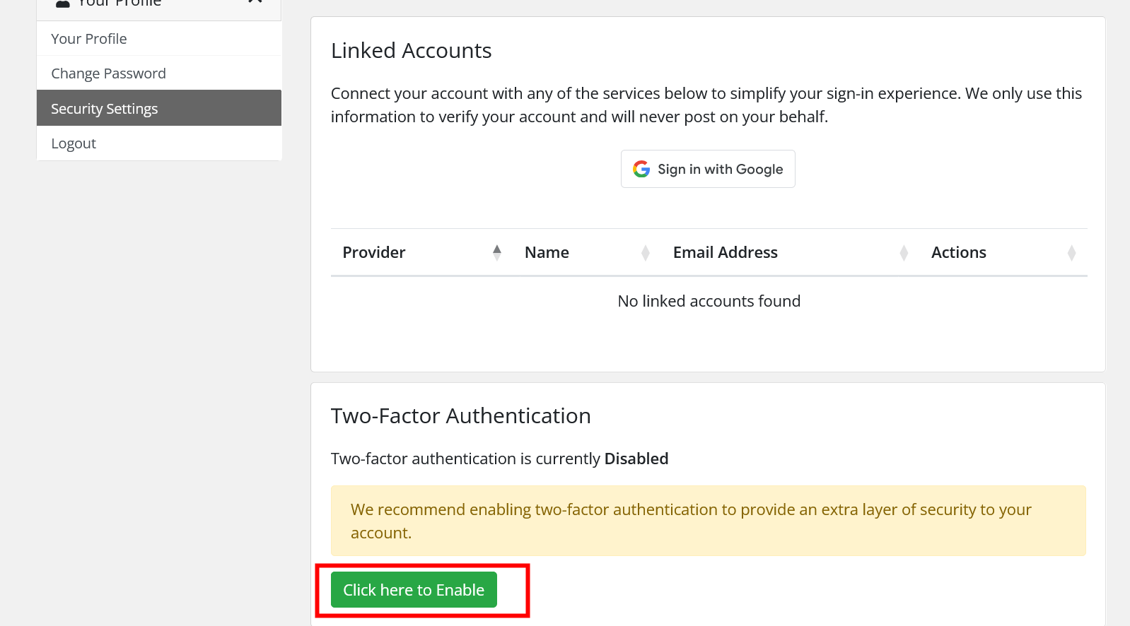 Enable 2FA and follow the instructions