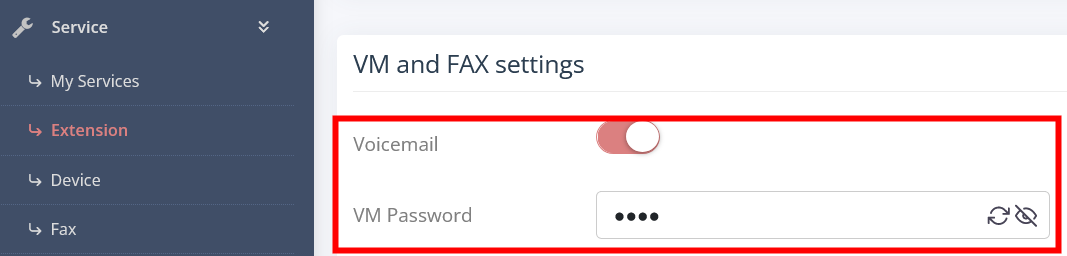 Scroll dowm the page to VM and FAX settings
