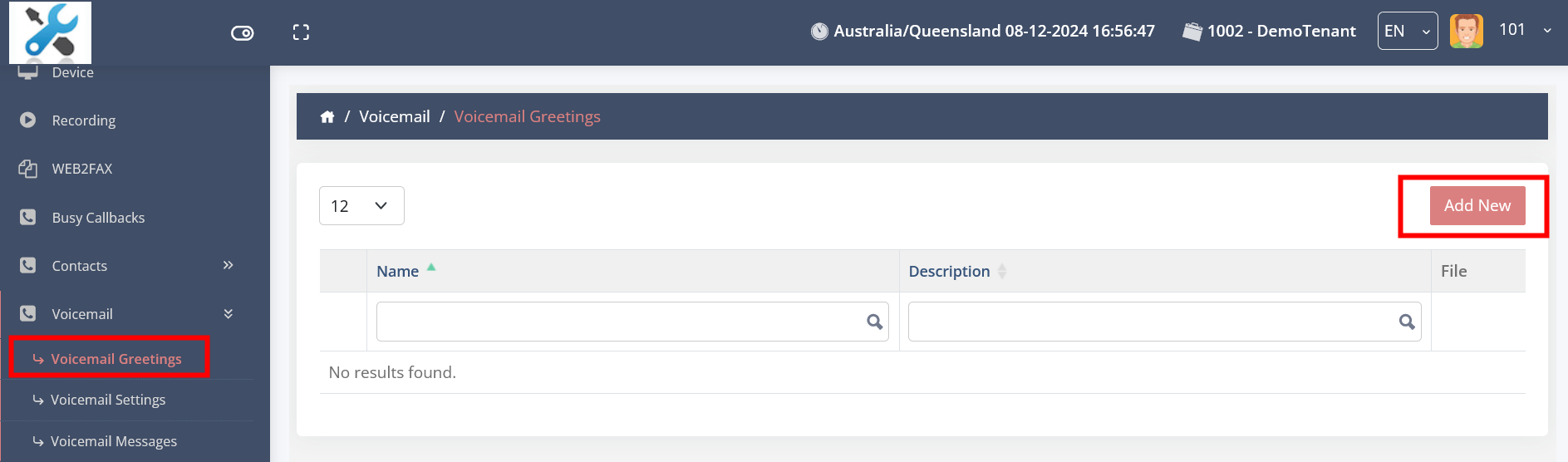 Click on VOICEMAIL - VOICEMAIL GREETING