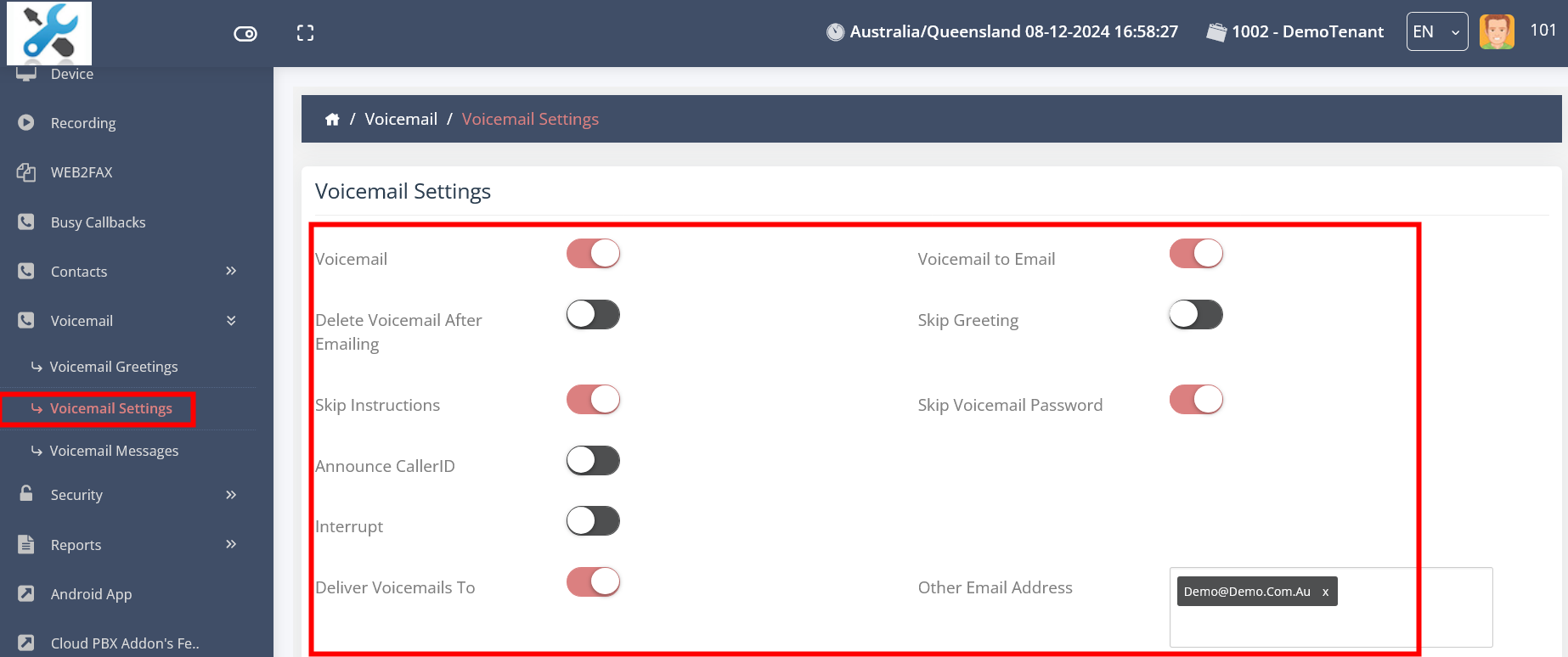 Voicemail to Email - ON