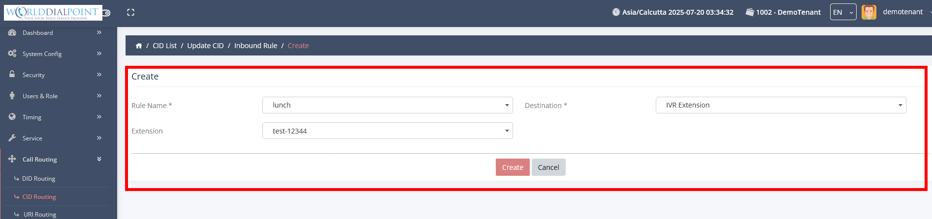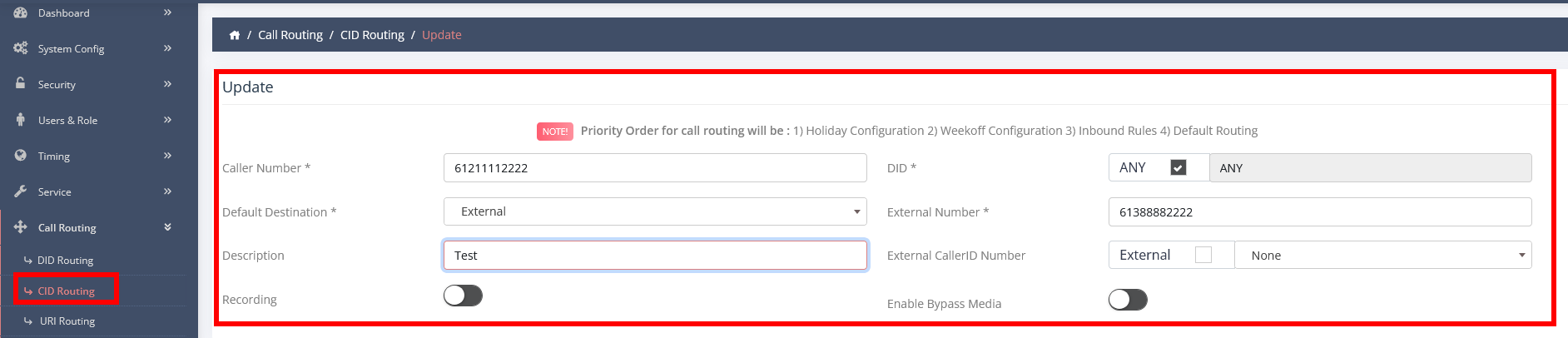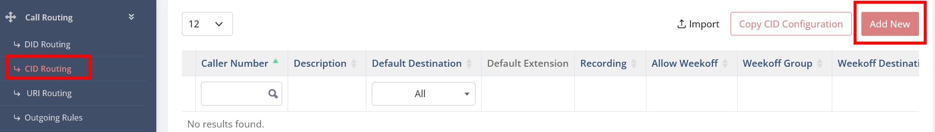 - Click on CID ROUTING