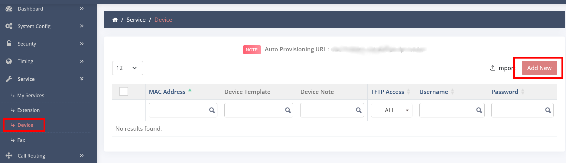 Click on SERVICE - DEVICE - ADD DEVICE