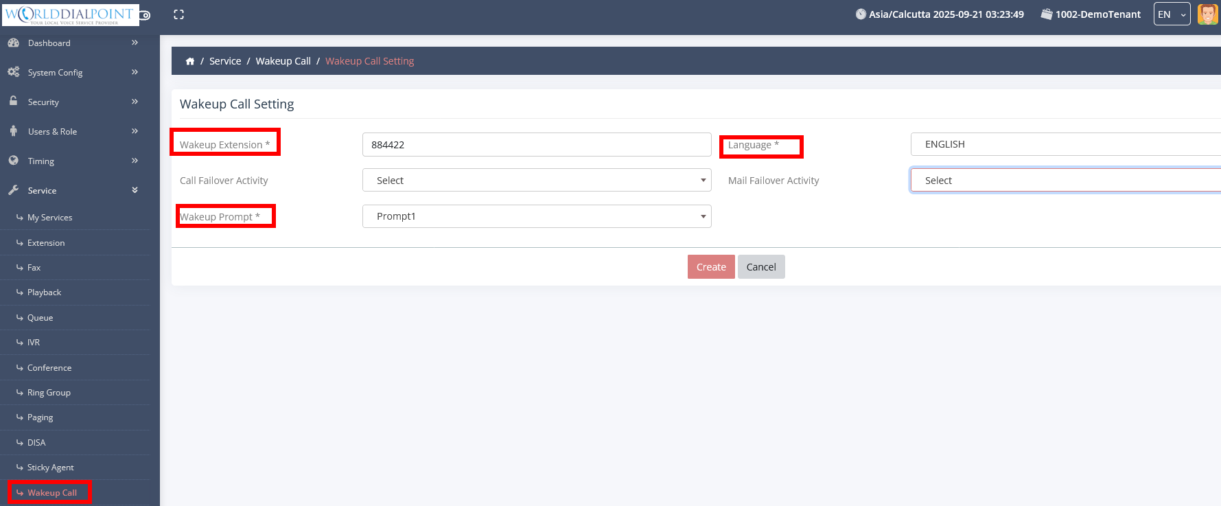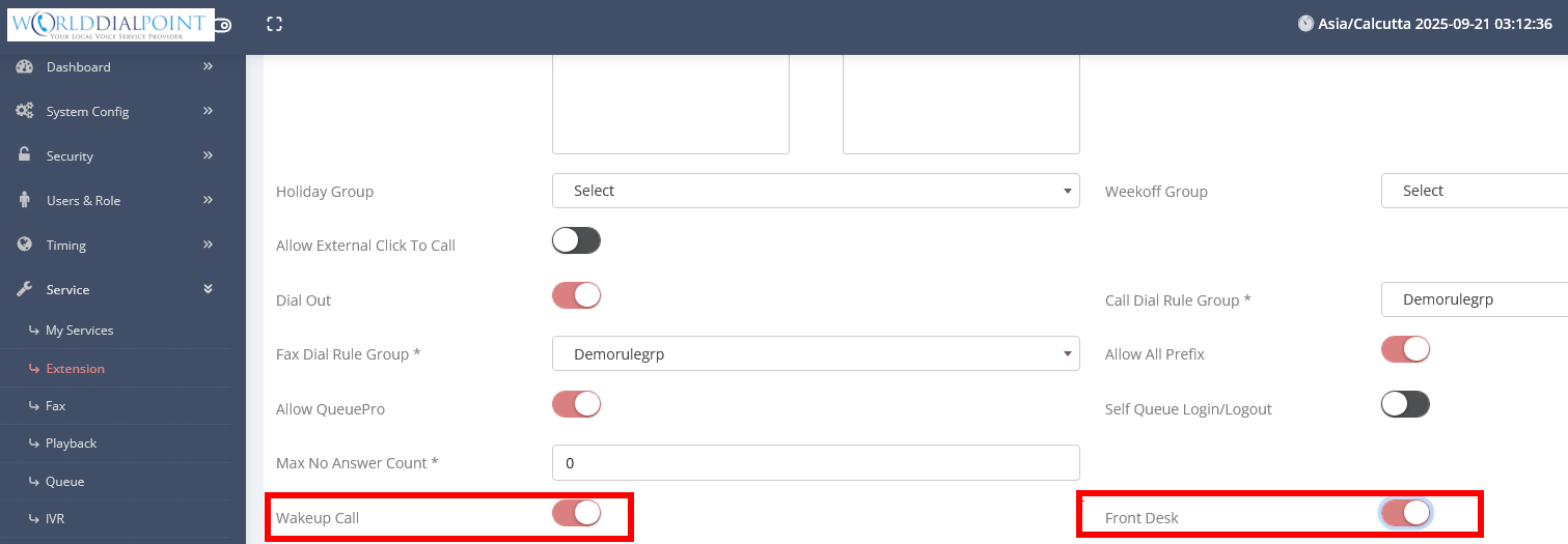 - Wakeup Extension - Enter a 6 digit number (enter any number you like in the screenshot we used 884422)