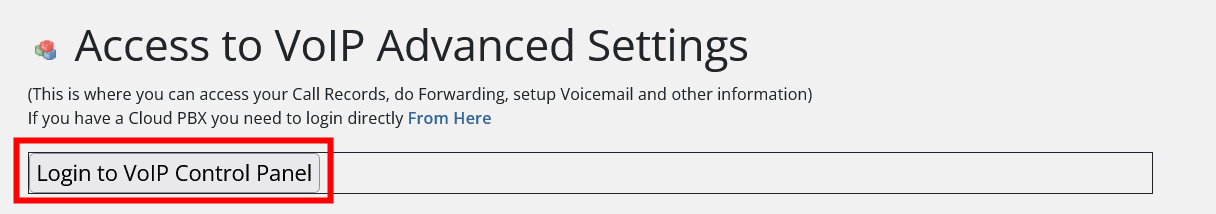 - Scroll down to LOGIN TO VOIP CONTROL PANEL and Click on it